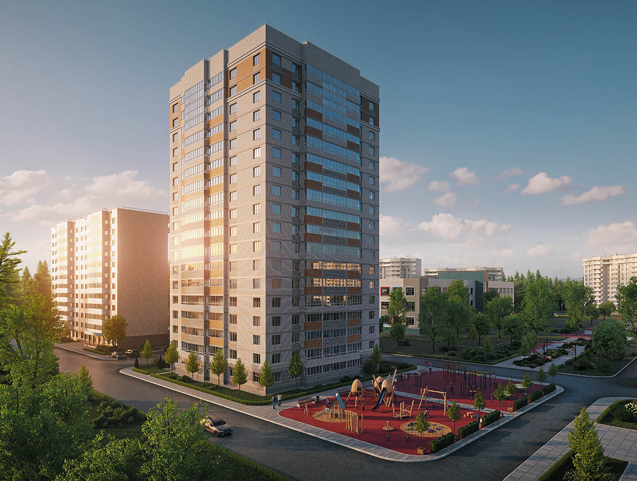 Здание монолитно‑кирпичное и рассчитано на 162 квартиры. В продаже представлены 1‑, 2‑ и 3‑комнатные варианты площадью примерно от 42 до 84 м². Для будущих жителей предусмотрен благоустроенный двор с детской и спортивной площадками, площадкой для сбора мусора и парковочными местами на придомовой и внешней территории.